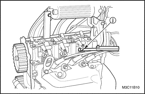 1. Снять направляющую трубку (i) масляного щупа и переднюю нижнюю крышку (j) приводного ремня газораспределительного механизма.