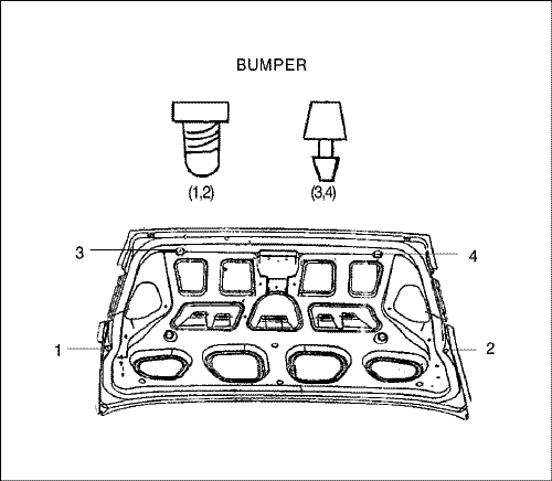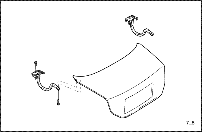 - Прикрепите петли крышки багажника в двух местах четырьмя болтами.