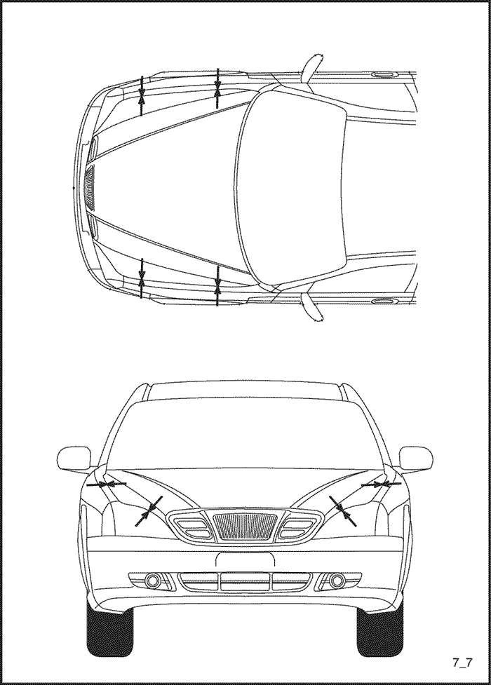- Закрыть капот и проверить спереди и сзади зазоры и разницу уровней капота, крыла и фар.