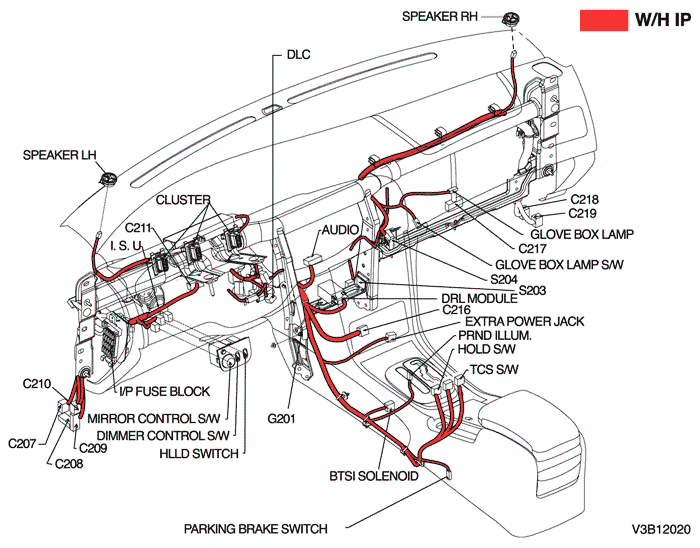 | S201 (оранжев.) | Приборная панель | За коробкой реле приборной панели |