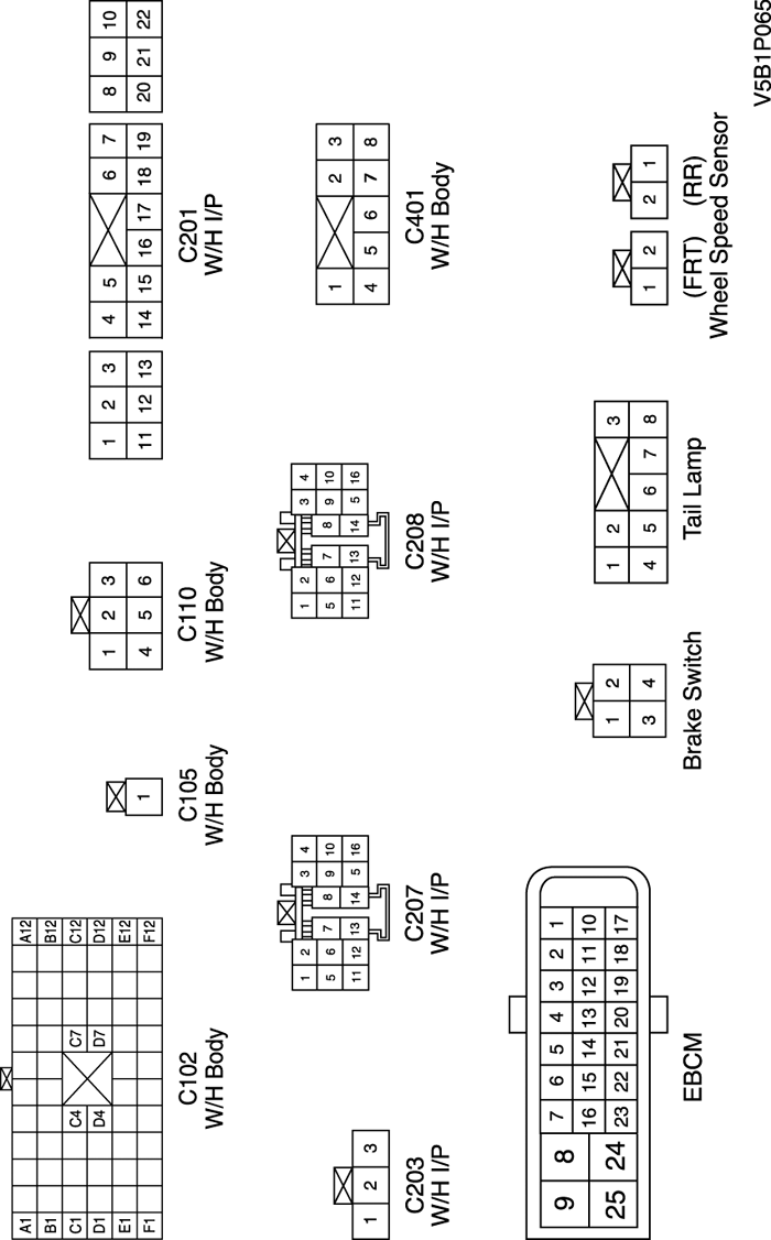 | С105 (контакт 1, черный) | Блок предохранителей в моторном отсеке - АБС | Блок предохранителей в моторном отсеке |