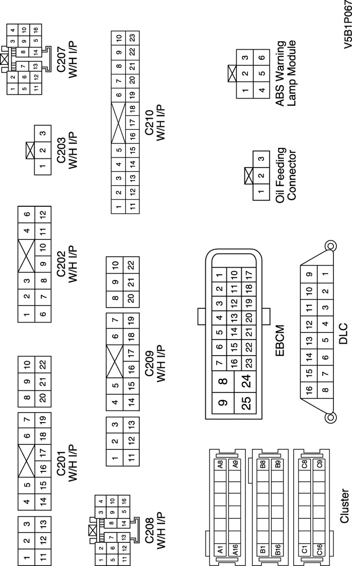 2) ЦЕПЬ КОМБИНАЦИИ ПРИБОРОВ, БЛОКА КОНТРОЛЬНОЙ ЛАМПЫ АБС, МУФТЫ ПОДАЮЩЕГО МАСЛОПРОВОДА И КОЛОДКИ ДИАГНОСТИКИ