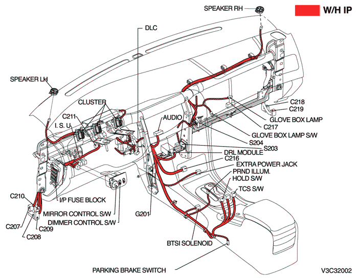 | S201 (оранжев.) | Приборная панель | За коробкой реле приборной панели |