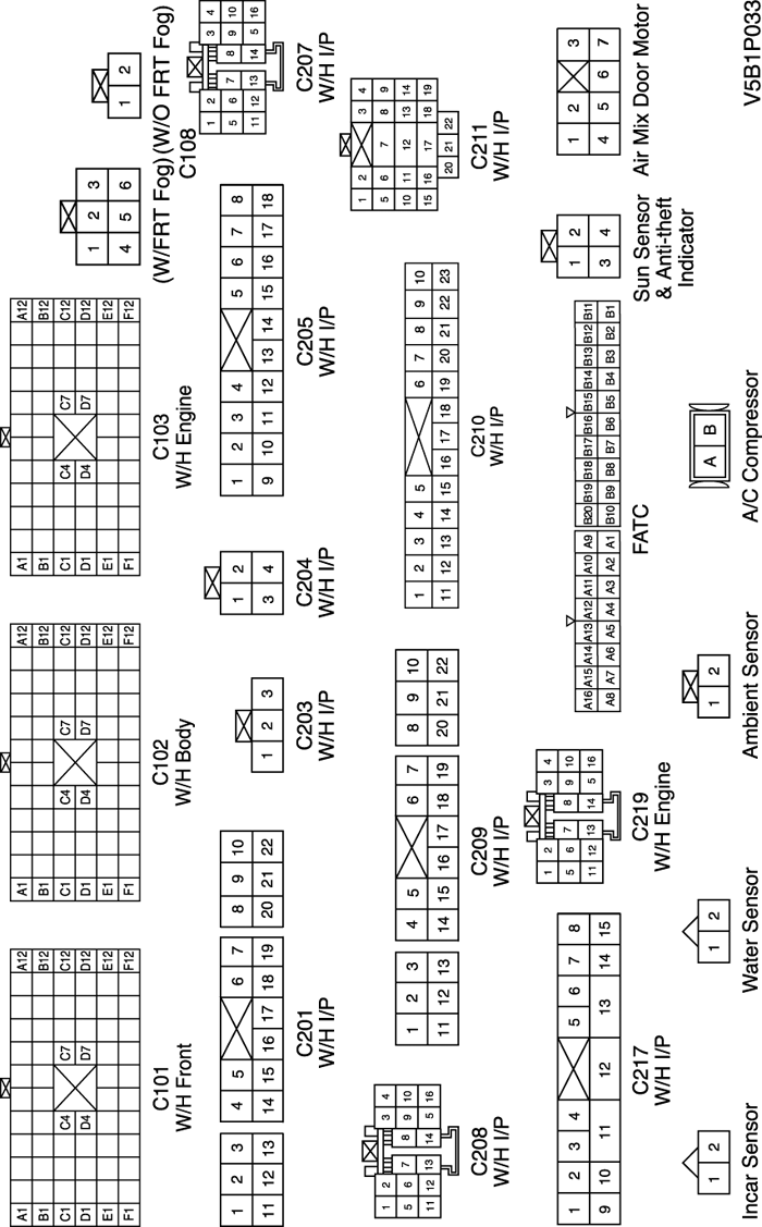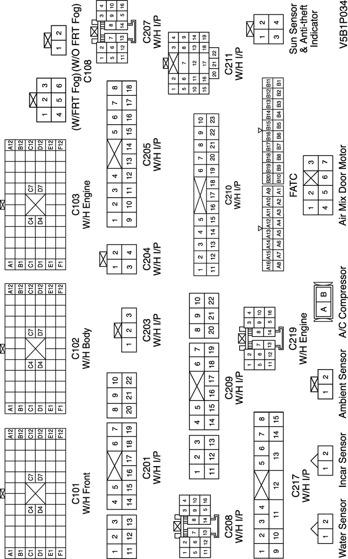 | С101 (контакт 68, серый) | Блок предохранителей в моторном отсеке - передняя часть | Блок предохранителей в моторном отсеке |