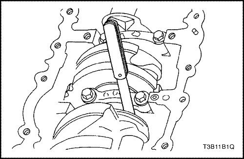 10. Проверьте все зазоры коренных подшипников, используя имеющуюся в продаже пластмассовую калибровочную проволоку (эластичная калибровочная проволока).
