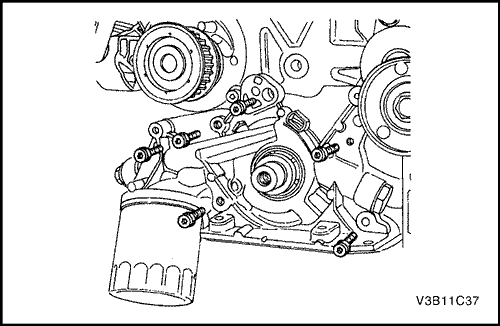 Затяните винты задней крышки приводного ремня газораспределительного механизма до 10 Н•м (89 lb-ft).