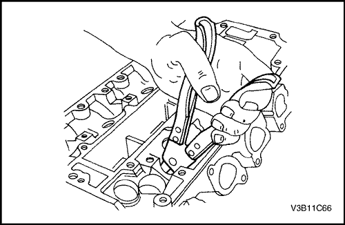 1. Снимите головку цилиндров с присоединенным впускным и выпускным коллектором. Следуйте пункту "Головка цилиндров и прокладка" в этом разделе.