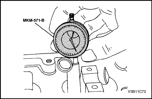 6. Проверьте допустимый осевой люфт коленчатого вала. Следуйте пункту "Технические характеристики двигателя" в этом разделе.