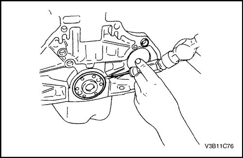 71. Отрегулируйте натяжение приводного ремня газораспределительного механизма. Следуйте пункту "Проверка и регулировка натяжения приводного ремня газораспределительного механизма" в этом разделе.