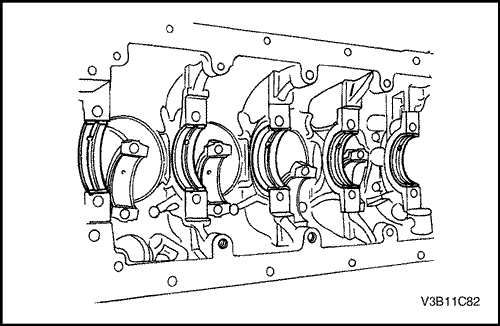 18. Проверьте зазоры в подшипниках на разрешенные допуски. Следуйте пункту "Технические характеристики двигателя" в этом разделе.