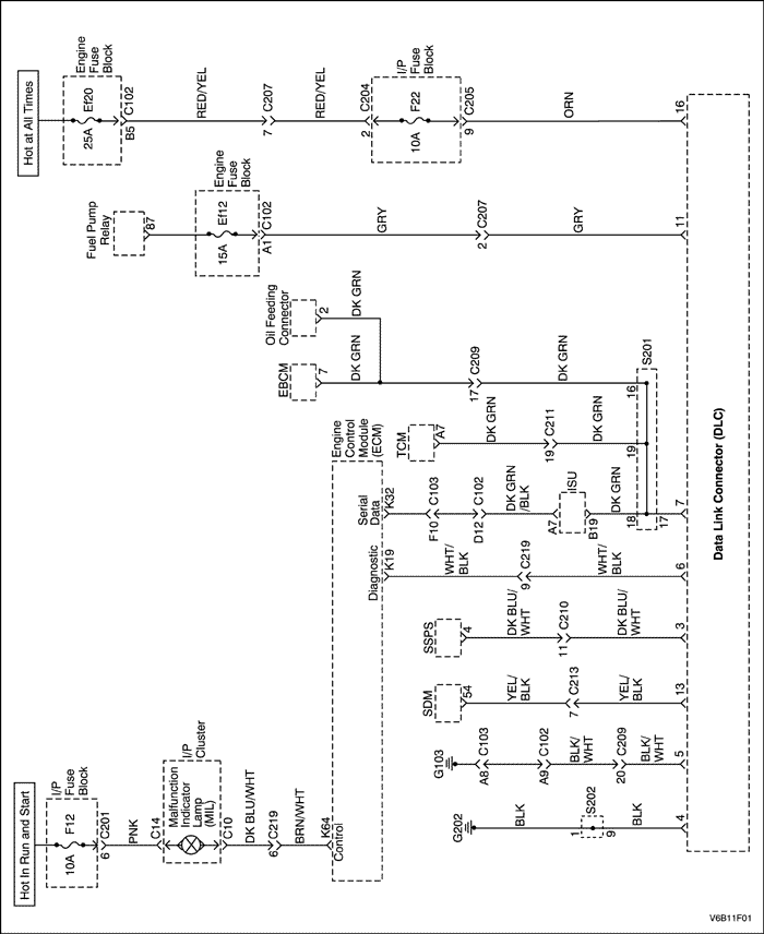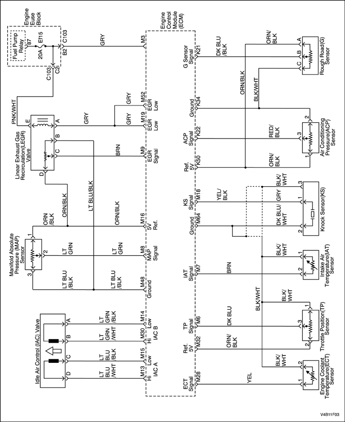 Электрическая схема контроллера системы управления двигателем (2,0 Два распределительных вала с верхним расположением - 1 ИЗ 6)