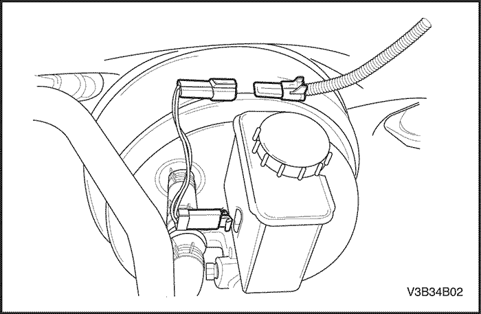 1. Разъединить разъем жгута проводов, который закреплен сверху на бачке тормозной жидкости.