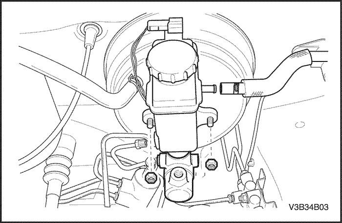 1. Установить главный цилиндр в сборе, используя для крепления новые гайки.