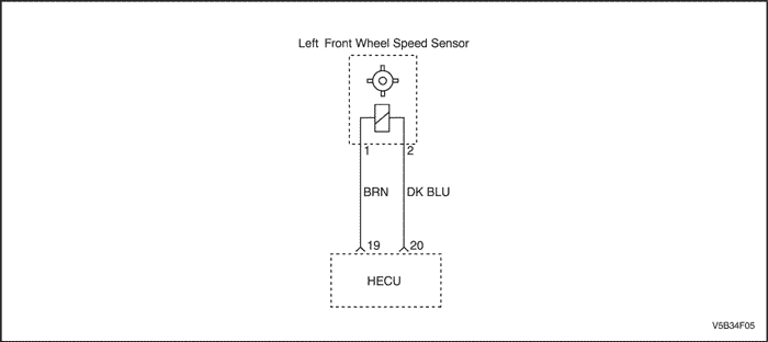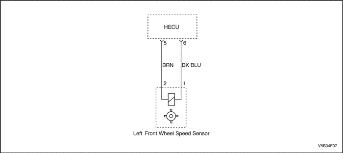 При вращении колеса датчик скорости вырабатывает сигнал в виде напряжения переменного тока, возрастающего по мере увеличения скорости колеса. Блок HECU использует частоту сигнала переменного тока для расчета скорости колеса. Датчик скорости подключен к HECU с помощью так называемой "витой пары" проводов. Благодаря скручиванию проводов уменьшается восприимчивость к электромагнитным помехам, которые могут привести к записи в память диагностического кода неисправности.