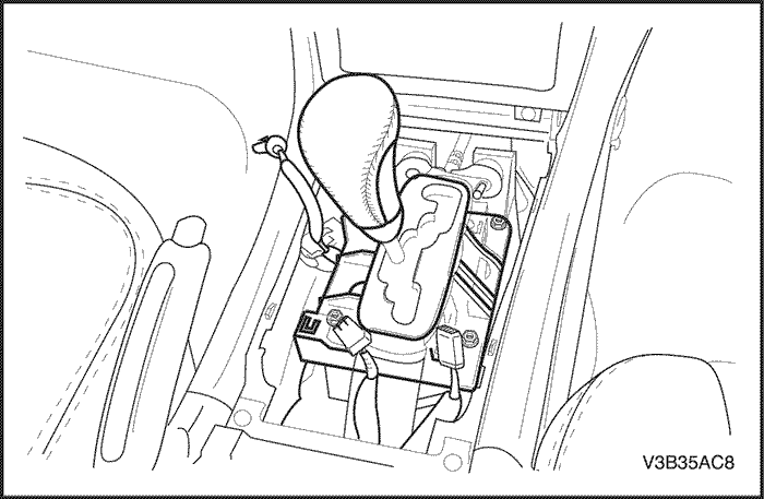 Запустить двигатель и оставить его работающим примерно на 5 минут или, по возможности, проехать на автомобиле несколько километров (миль), чтобы разогреть жидкость коробки передач. Проверить уровень жидкости при температуре коробки передач выше 30°С (86°Ф).