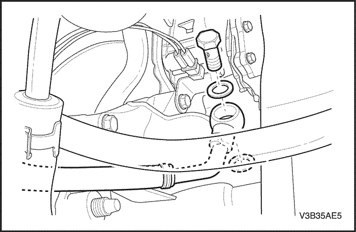 Вывернуть пробку отверстия для проверки уровня жидкости с помощью приспособления для снятия и установки пробки заливного отверстия dw260-070. Так как коробка передач может работать с различным объемом жидкости, жидкость может вытекать или не вытекать из отверстия для проверки уровня при снятии пробки.