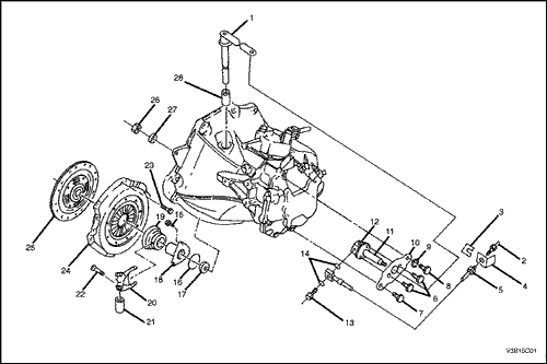 Снять и переустановить ось вилки выключения сцепления. Слегка смазать концы вилки выключения в районе подшипника маслом для колесных подшипников.