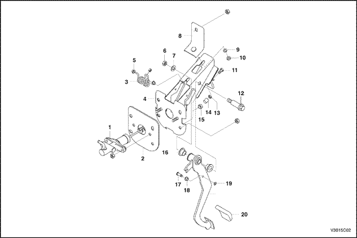 Система привода сцепления состоит из педали сцепления, оси педали, вилки выключения сцепления и подшипника выключения. При нажатии на педаль сцепления вилка поворачивается вокруг оси и надавливает на подшипник выключения. Подшипник передает усилие на лепестки пружины нажимного диска, размыкая сцепление.