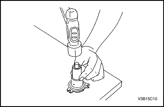 1. Снять цилиндр выключения сцепления в сборе с автомобиля. См. "Цилиндр выключения сцепления в сборе" в этом разделе.