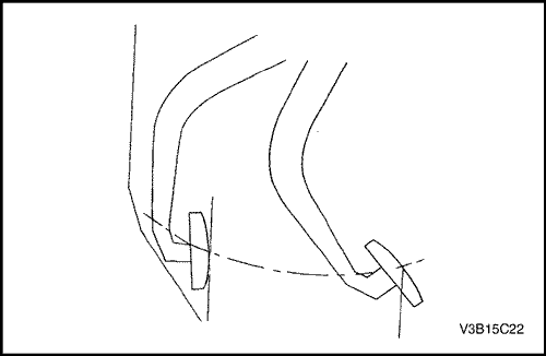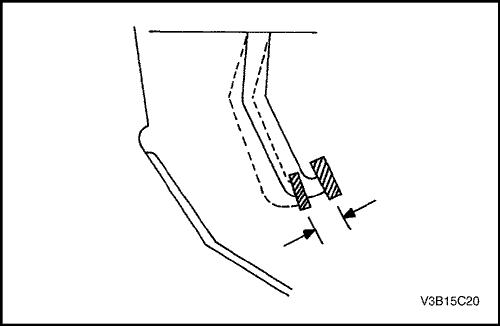 3. Перемещая рычаг переключения передач в положение "задний ход", медленно выжать педаль сцепления и измерить расстояние между точкой, в которой не слышен шум шестерен, и точкой, в которой педаль полностью утоплена. Измеренное расстояние должно составлять более 30 мм (1,2 дюйма).