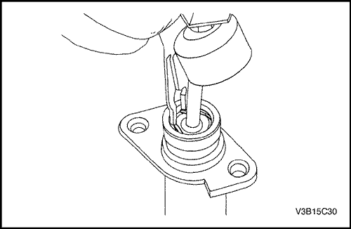 4. Нанести смазку на место соединения толкателя с рычагом выключения. Следует проявлять осторожность, чтобы не испачкать смазкой защитный чехол.