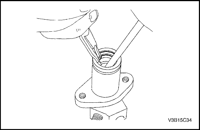 2. Снять защитный кожух и извлечь стопорное кольцо поршня с помощью специального приспособления.