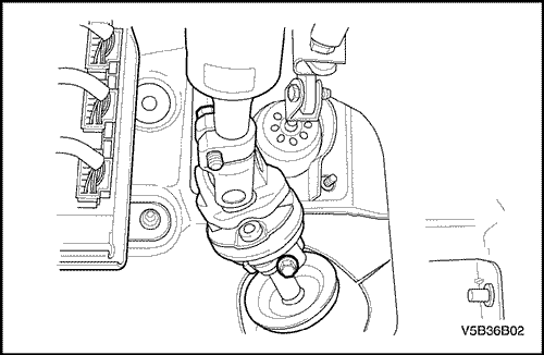 - Установите болт в нижний универсальный шарнир на промежуточном валу и затяните болт.