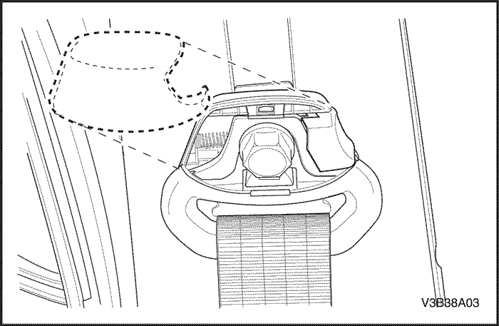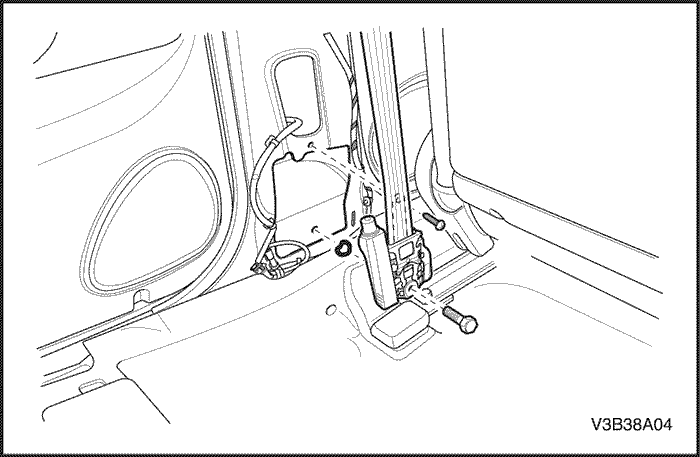 Затяните болт крепления механизма втягивания ремня безопасности моментом 38 Н•м (28 lb-ft).
