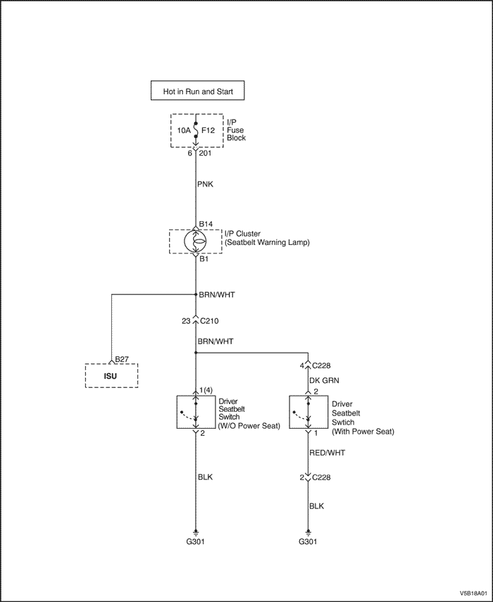 Проверьте предохранитель сигнализации ремня безопасности f12.