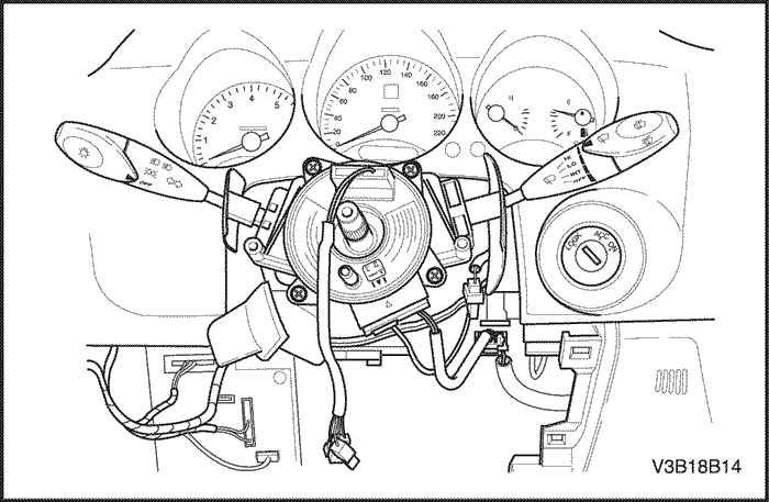 В состав часовой пружины также входят проводка и разъемы цепи клаксона и цепи подушки безопасности водителя. Проводка часовой пружины подключается к желтому двустороннему разъему на нижней части рулевой колонки. Желтый разъем подушки безопасности водителя имеет закорачивающую перемычку, которая при отсоединении разъема замыкает накоротко цепь верхнего уровня подушки безопасности на цепь нижнего уровня.