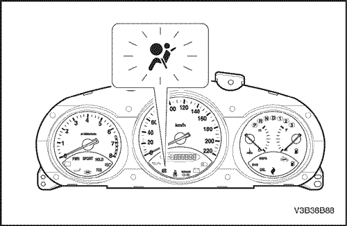 Включает контрольную лампу подушек безопасности, предупреждая водителя о неполадках.