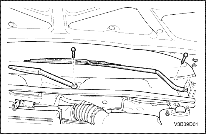 Система стеклоочистителей ветрового стекла состоит из электродвигателя стеклоочистителей, системы тяг, рычагов стеклоочистителей со щетками и выключателя стеклоочистителей/омывателей. В цепи стеклоочистителей ветрового стекла установлено возвратное устройство, состоящее из червячной передачи и кулачкового диска. Устройство служит для временного поддержания цепи в замкнутом состоянии после перевода выключателя в выключенное положение. Система стеклоочистителей приводится в движение электродвигателем с магнитом постоянного типа. Электродвигатель стеклоочистителей ветрового стекла монтируется на щиток передка и соединяется непосредственно с системой тяг стеклоочистителей ветрового стекла.