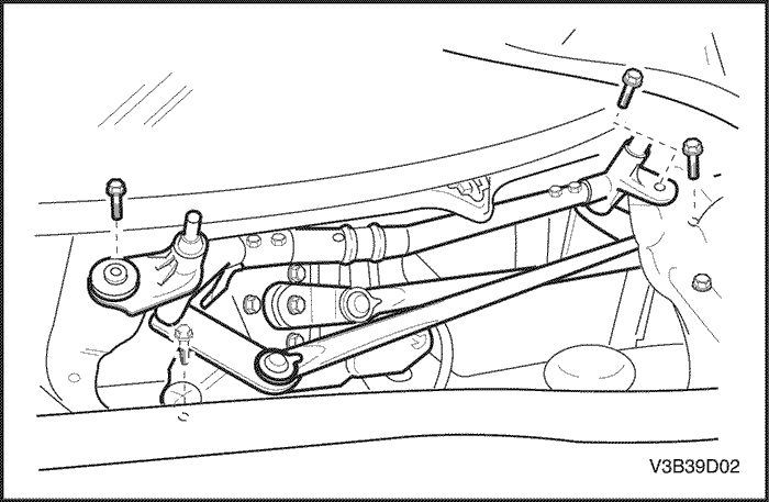 Затянуть гайку системы тяг рычага стеклоочистителя с усилием 8,5 Н•м (75 фунт-дюймов).