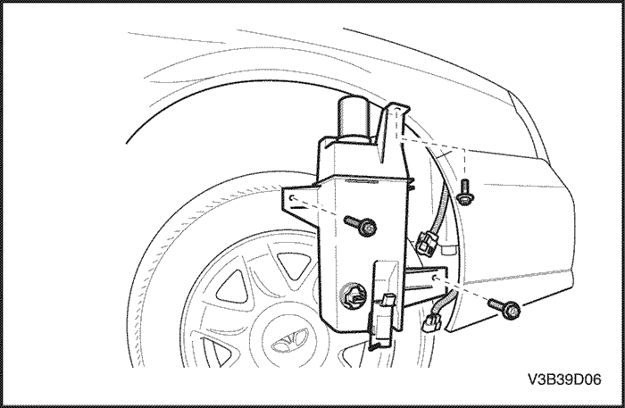 2. Снять правое переднее левое колесо. См. раздел 2Е, «Шины и диски».