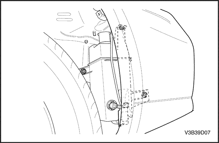 Затянуть болты бачка омывателя с усилием 9 Н•м (80 фунт-дюйм).