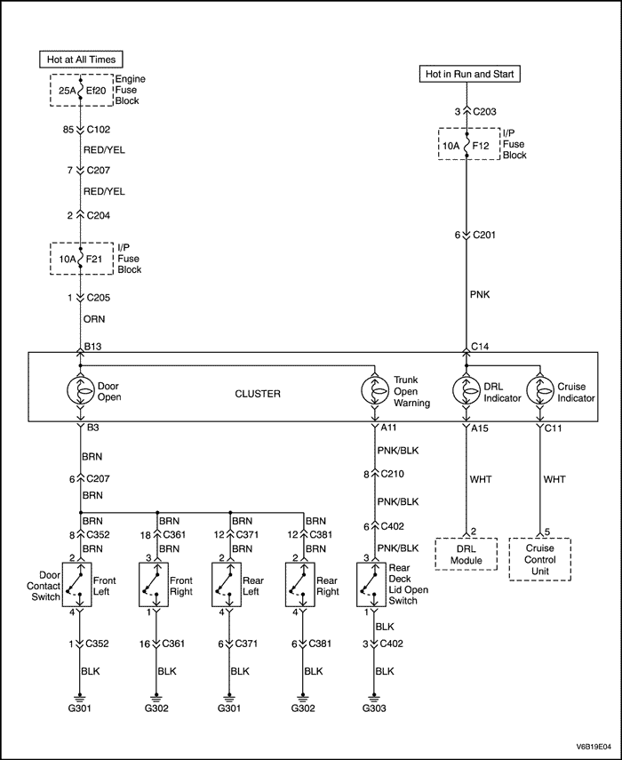 Устранить разрыв цепи между предохранителями ef21 и f12 и разъемами b14, c4 и b10 комбинации приборов.
