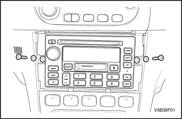 Затянуть винты аудиосистемы с усилием 4 Н•м (35 фунт-дюймов).