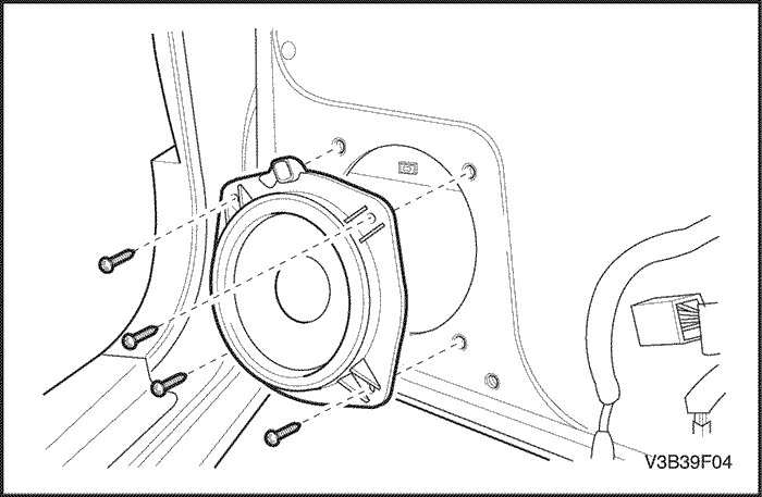 Во всех аудиосистемах используются шесть динамиков: Два динамика крепятся в передних дверях, два динамика крепятся в пластине порога задней торцевой двери и два высокочастотных динамика крепятся на верхней стороне панели приборов.