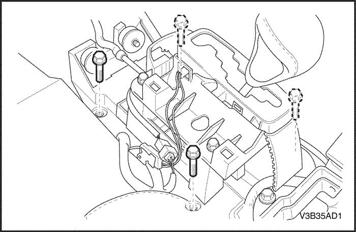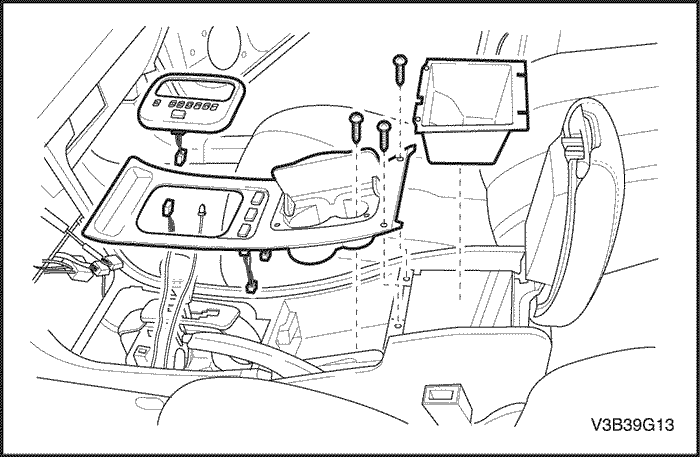 1. Снимите напольную консоль. См. «Напольная консоль» в этом разделе.