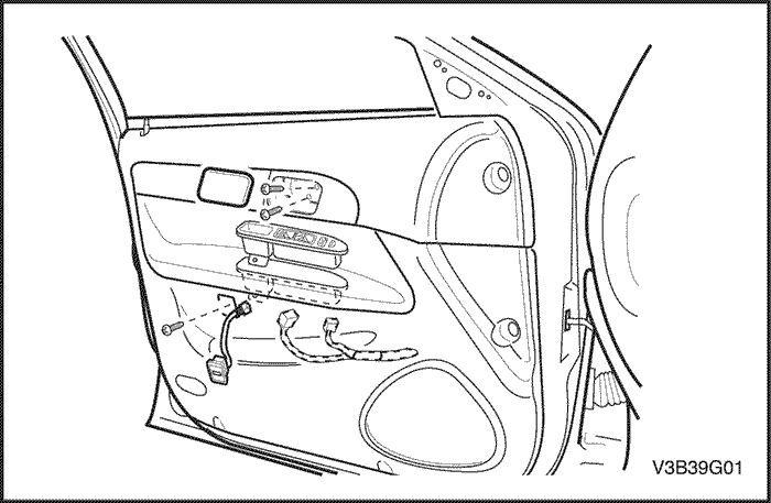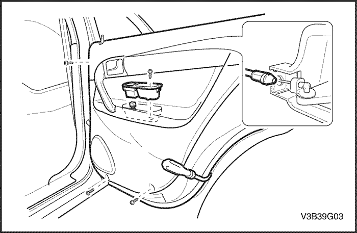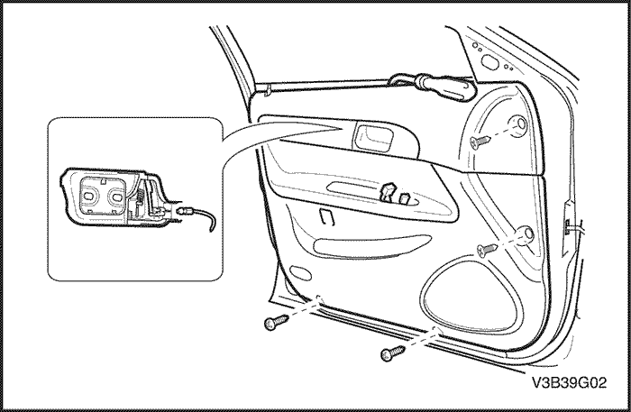 Затянуть винты панели обивки двери с усилием 2,5 Н•м (22 фунт-дюйма).