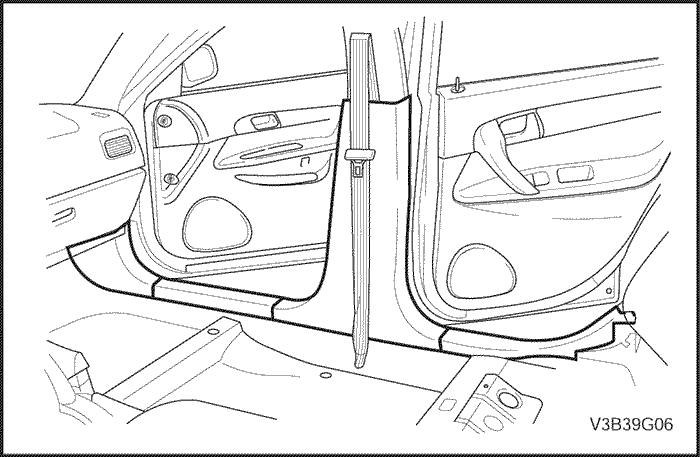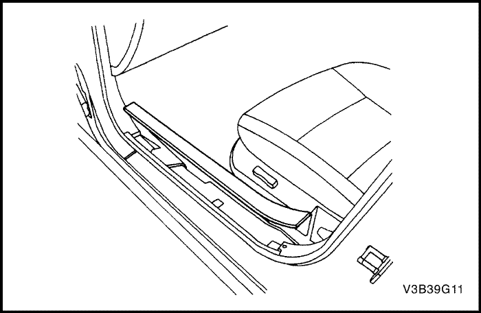 3. Снять панели обивки порогов левой и правой задних дверей. См. «Панель обивки порога задней двери» в этом разделе.