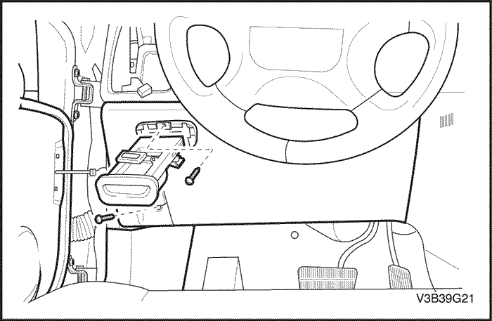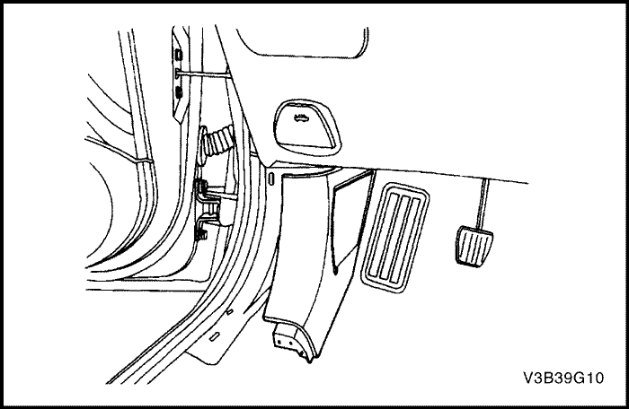 Затянуть крепежные болты коленного буфера со стороны водителя с усилием 10 Н•м (89 фунт-дюймов).