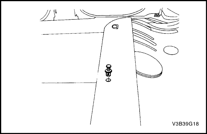 7. Снять левые и правые панели нижней обивки средней стойки. См. «Панель нижней обивки средней стойки» в этом разделе.