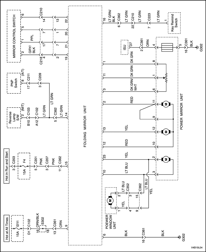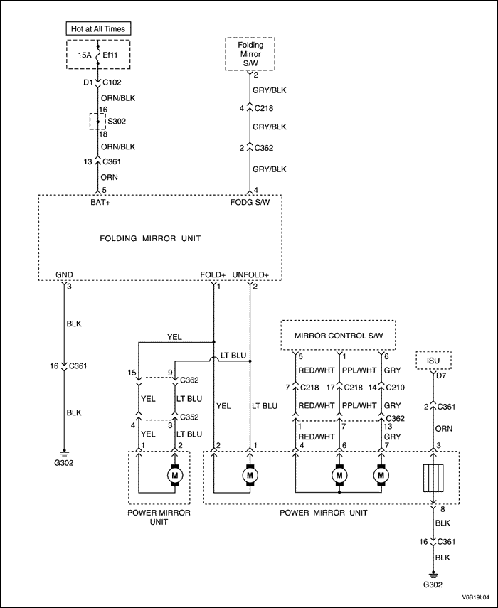 Цепь блока складываемого зеркала & пассажирского блока питания (зеркало osrvm без наклона)