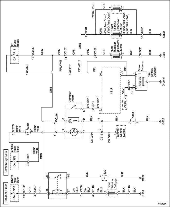 Устранить разрыв цепи между предохранителем f18 и разъемом наружного зеркала заднего вида.