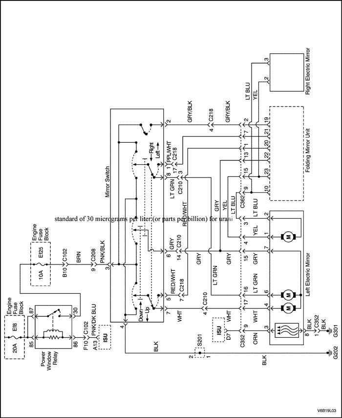 Устранить разрыв цепи массы для наружного зеркала заднего вида.