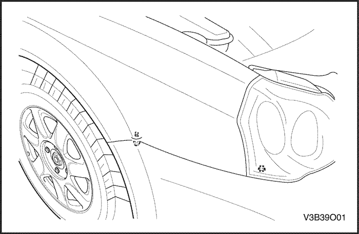 10. Установить брызговики передней колесной арки. Перейти к Раздела 9В, СИСТЕМЫ ОСВЕЩЕНИЯ.
