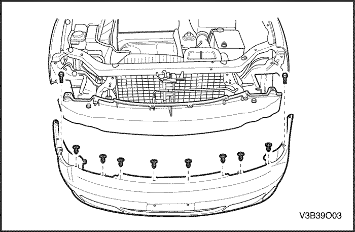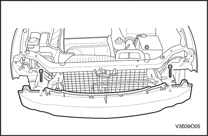 1. Снять облицовку переднего бампера. Перейти к "Облицовка переднего бампера" в этом разделе.