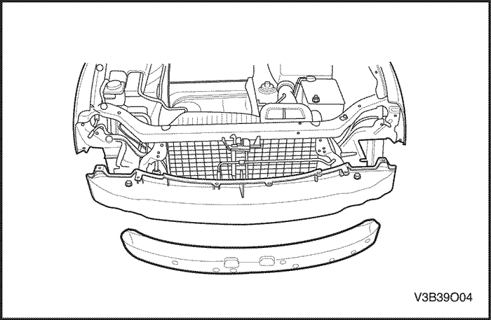 2. Снять поглотитель энергии переднего бампера. Перейти к "Поглотитель энергии переднего бампера" в этом разделе.