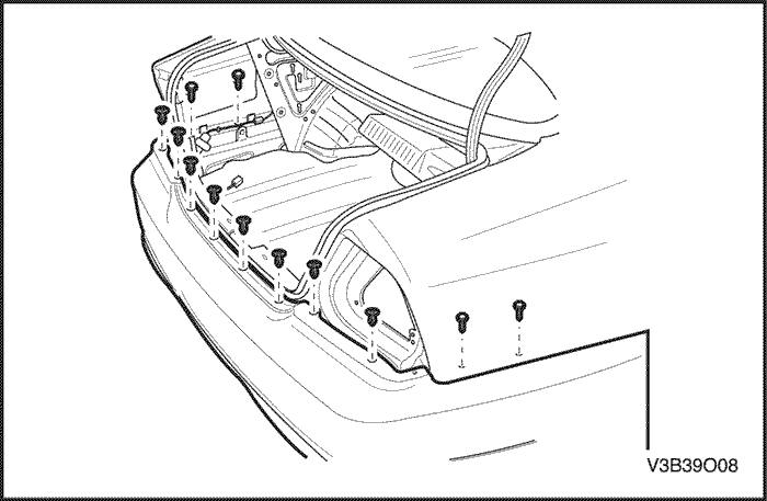 1. Снять облицовку заднего бампера. Перейти к "Облицовка заднего бампера" в данном разделе.